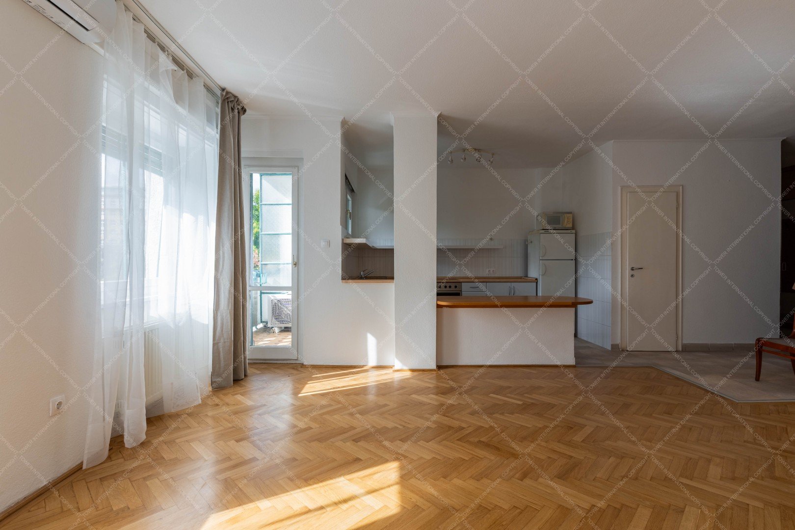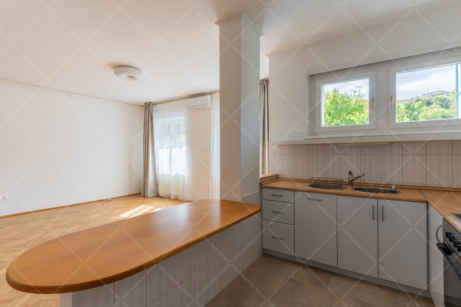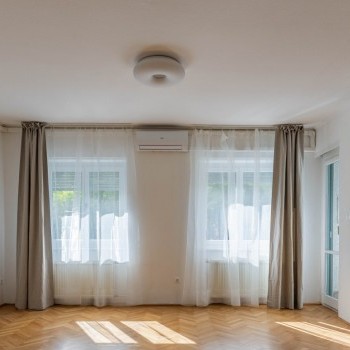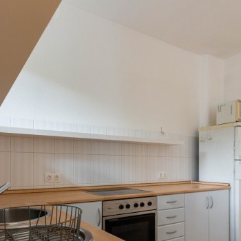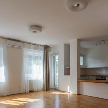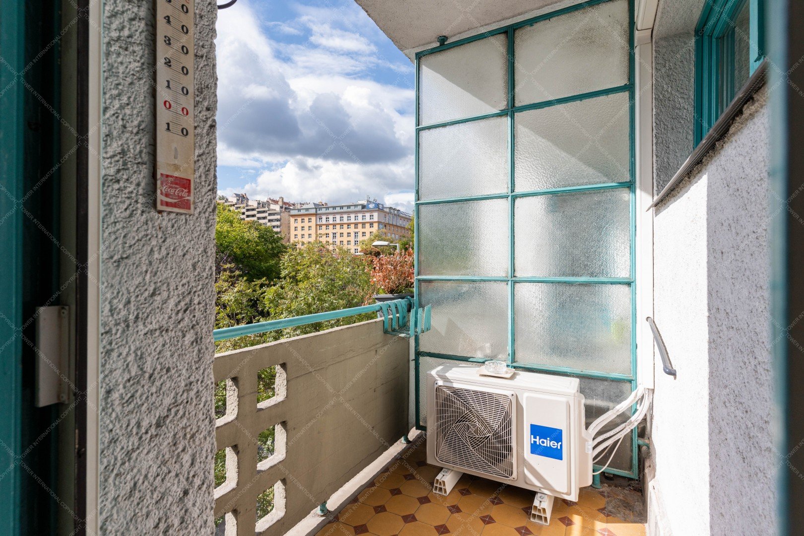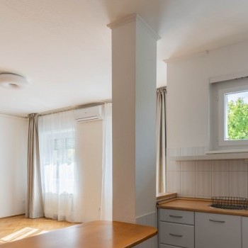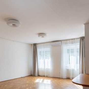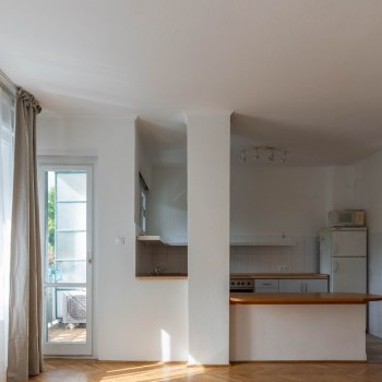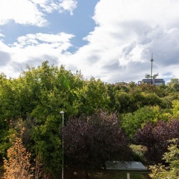 The panoramic apartament has a living room, open-plan kitchen, dining area, one bedroom, one bathroom and a balcony.