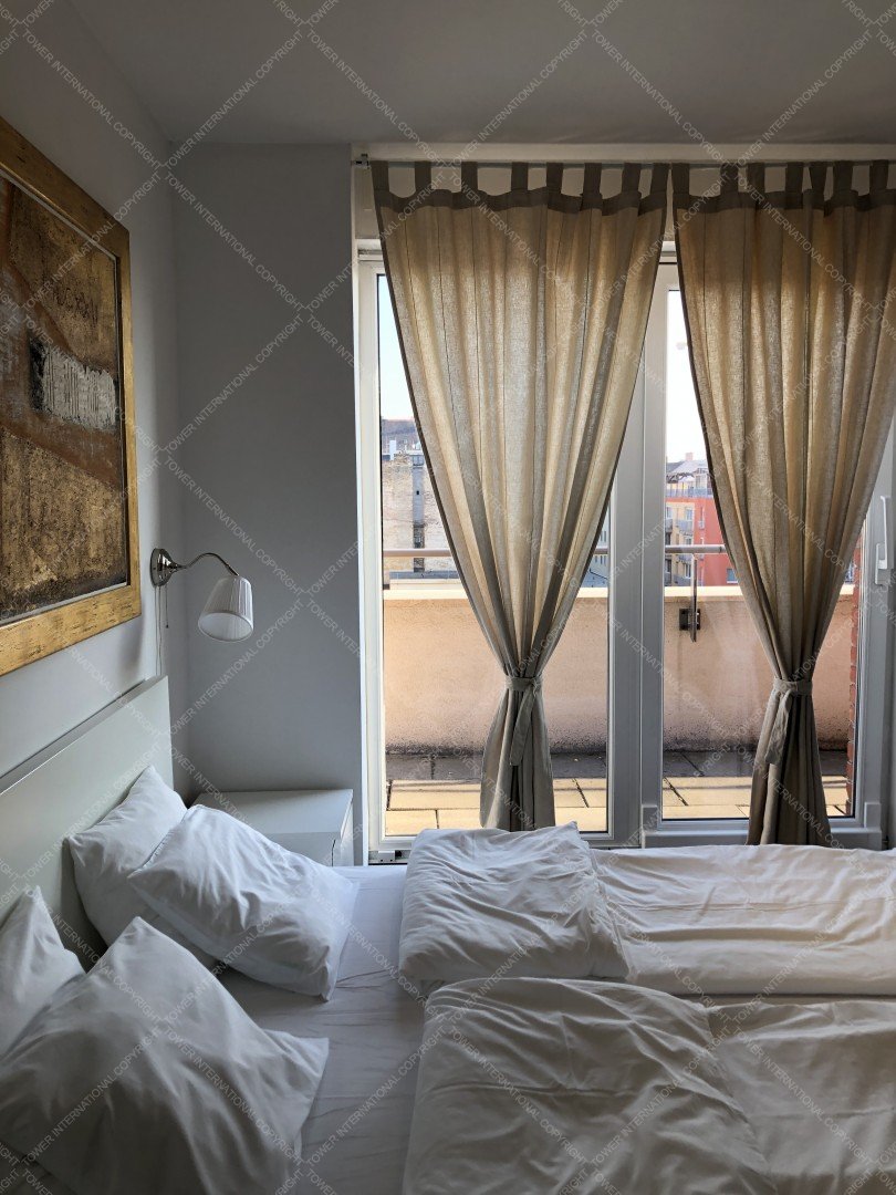 The flat is on the 6th floor, 85 sqm with 27 m2 terrace facing the Park.
