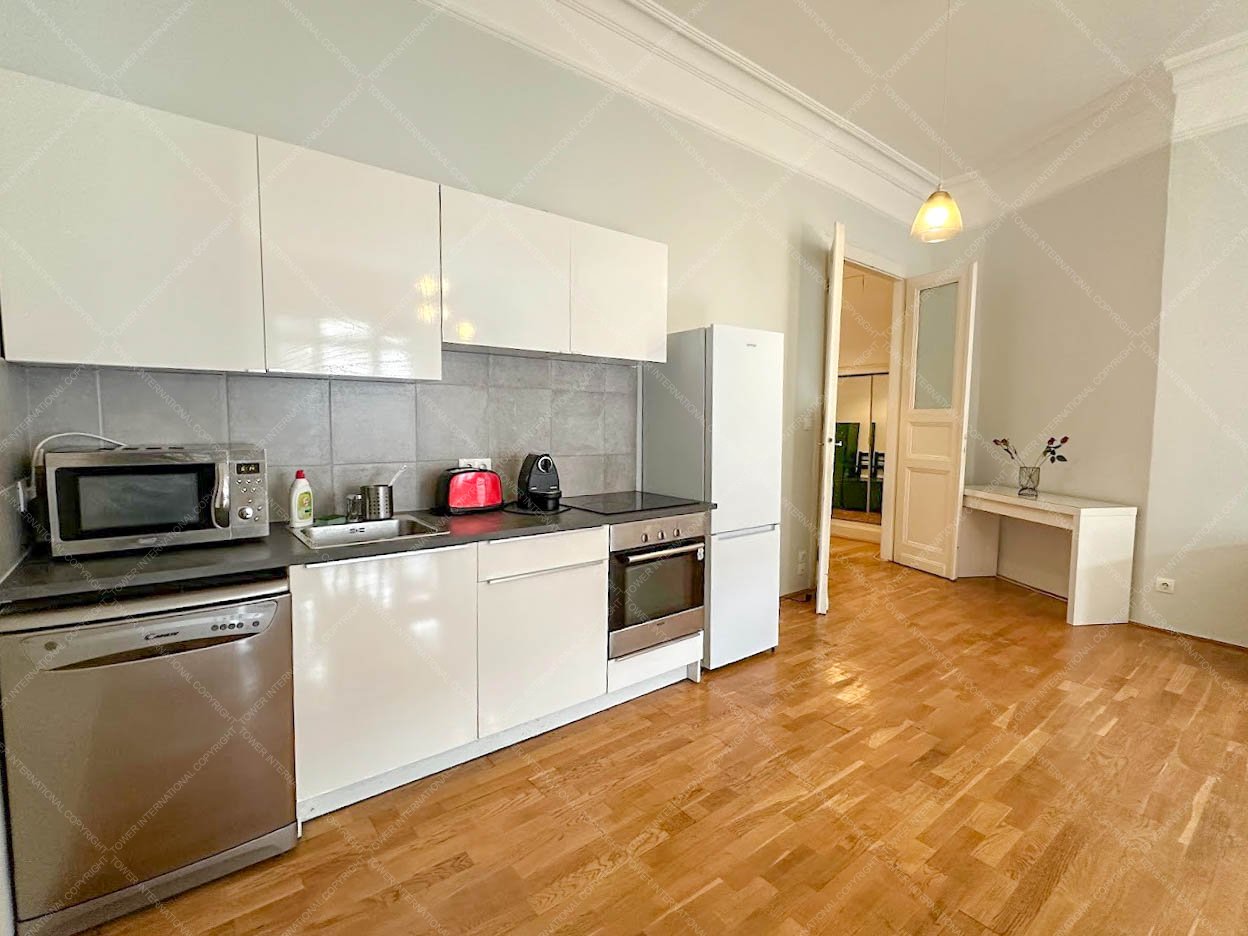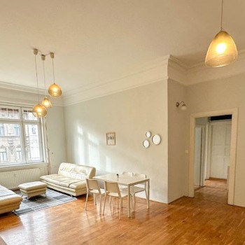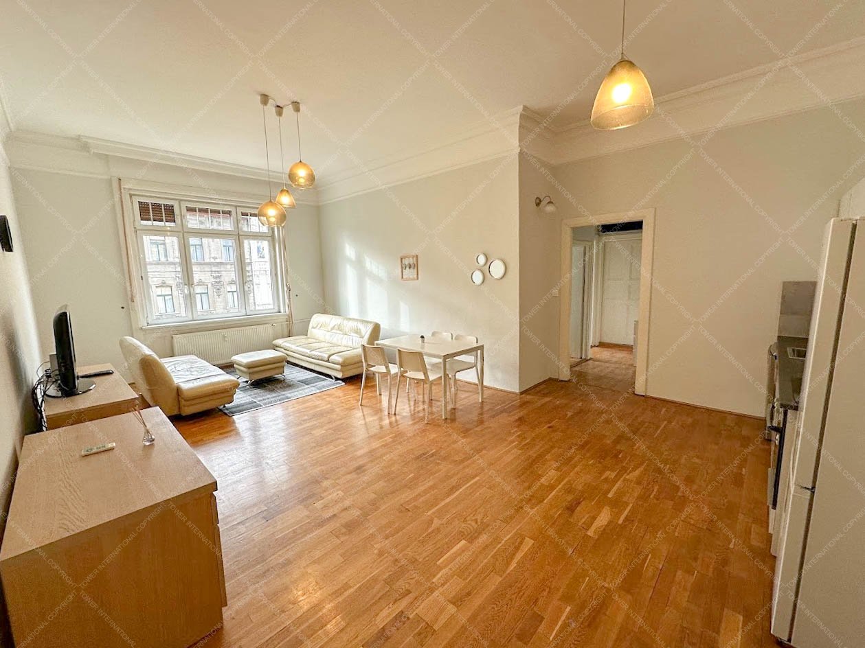 In the very heart of Budapest, close to Deák Square, at the corner of Károly Boulevard and Dohány Street, a truly exceptional 78 sqm, 3rd-floor apartment is available for rent in a well-maintained, listed (heritage) building with elevator.