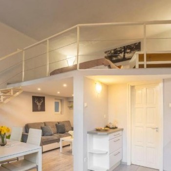 The property has a room with a loft and a bathroom.