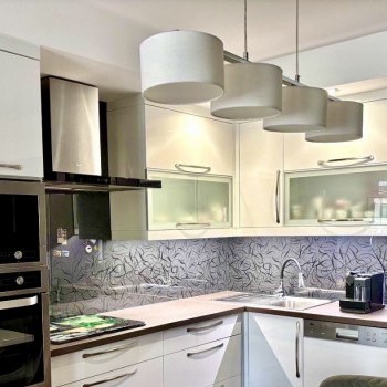 Fully equipped kitchen and household appliances: built-in hob, oven, microwave, extractor, dishwasher, fridge, washing machine, dryer