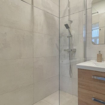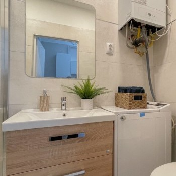 The apartment has two large rooms, which open together and separately. There is also a separate bathroom, a separate toilet and a separate kitchen.