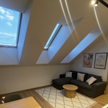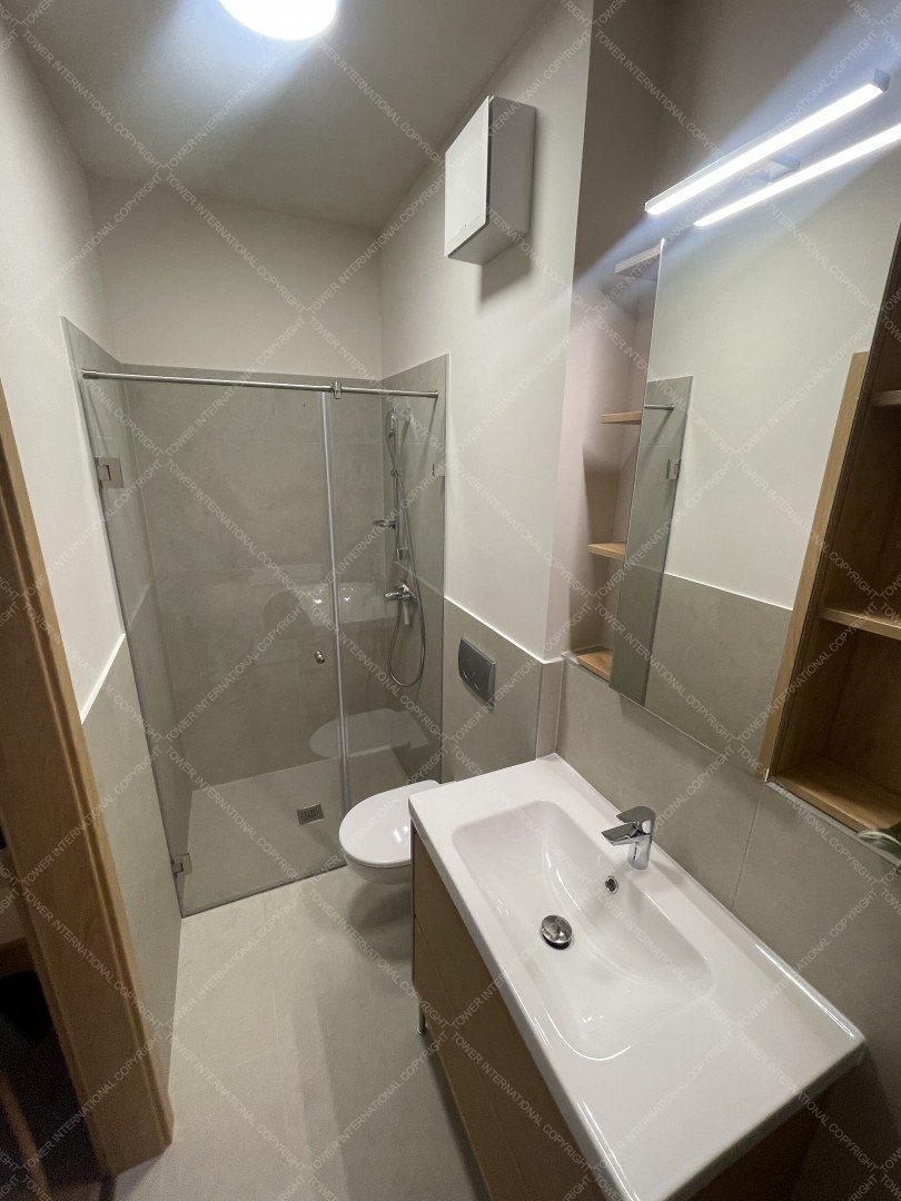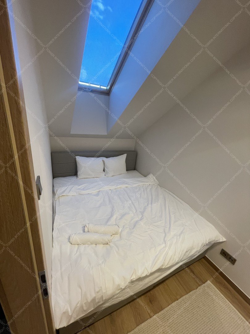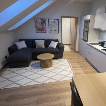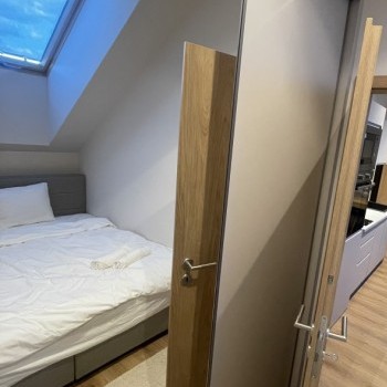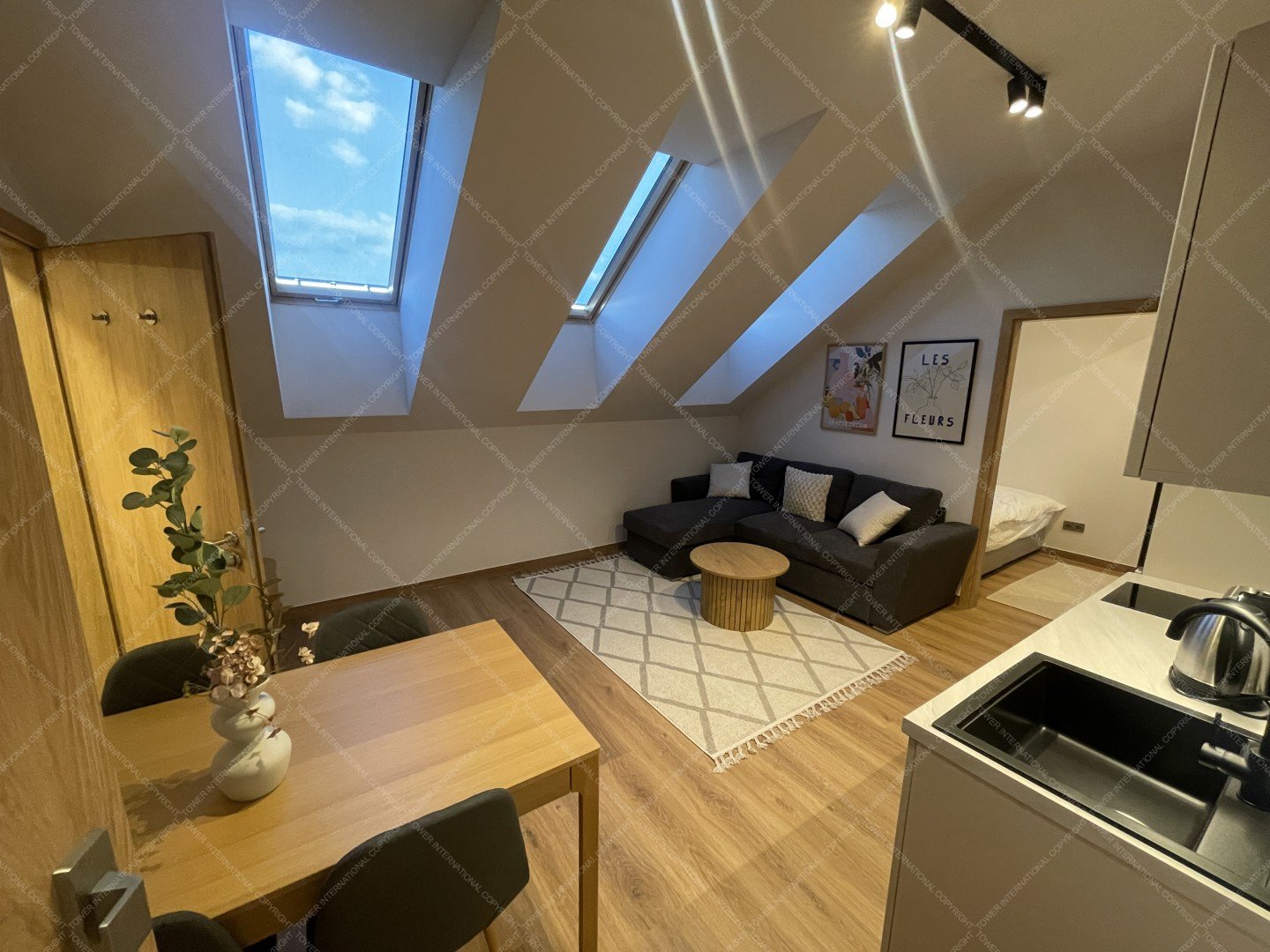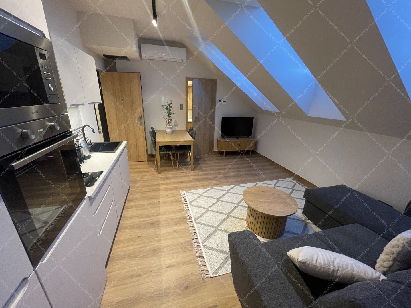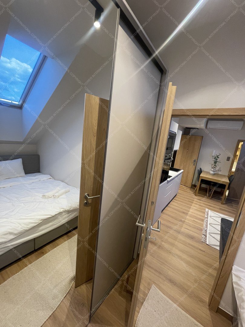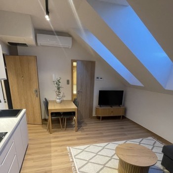 The apartment offers a bright and spacious living room and a cozy bedroom, all furnished in a clean, contemporary style. Everything is brand new and thoughtfully designed – all you need to bring is your suitcase! The apartment includes air conditioning for summer comfort and an elevator in the building for easy access.