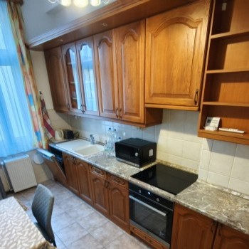 The apartment is bright and well laid out – all rooms have separate entrances, and the three street-facing rooms can be opened together. It was fully renovated in 2025, featuring new triple-glazed windows, a condensing gas boiler, steel radiators, 4-unit heating/cooling air conditioning, and a modern, fully equipped kitchen (induction hob, steam oven, dishwasher, microwave, refrigerator).