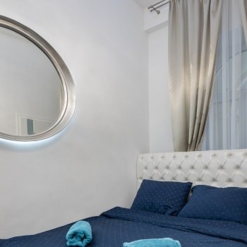 The air-conditioned, furnished apartment has a living room, 3 bedrooms, 2 bathrooms, a dining room, a separate kitchen, and 3 terraces. Currently, there is a double bed in the living room as well, therefore the property can be used as a 4 bedroom apartment as well.