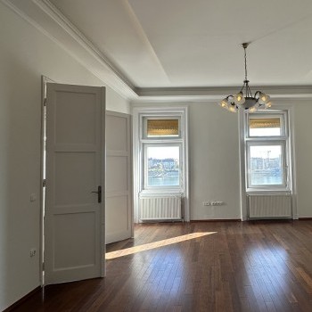 We offer a 86 m2 spacious and sunny apartment for rent in the 2nd district, on the 3rd floor of a riverside apartment building, with a new elevator and a wonderful panorama. The windows of the living room and the master bedroom overlook the Danube and the Parliament, the small bedroom and the kitchen window faces the inner courtyard. Rooms: 1 large living room, 2 bedrooms, a fully equipped kitchen next to the hall (combi refrigerator, dishwasher, ceramic hob), bathroom with shower. Two storage rooms also open from the hall. The apartment has its own water meter, the overhead costs are low. The apartment is bright, both bedrooms have spacious built-in wardrobes, and the larger bedroom also has a king size double bed. Equipped with a security door with bars.