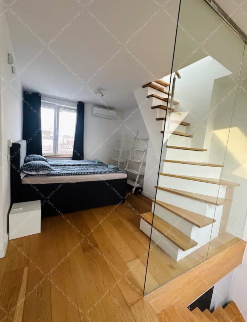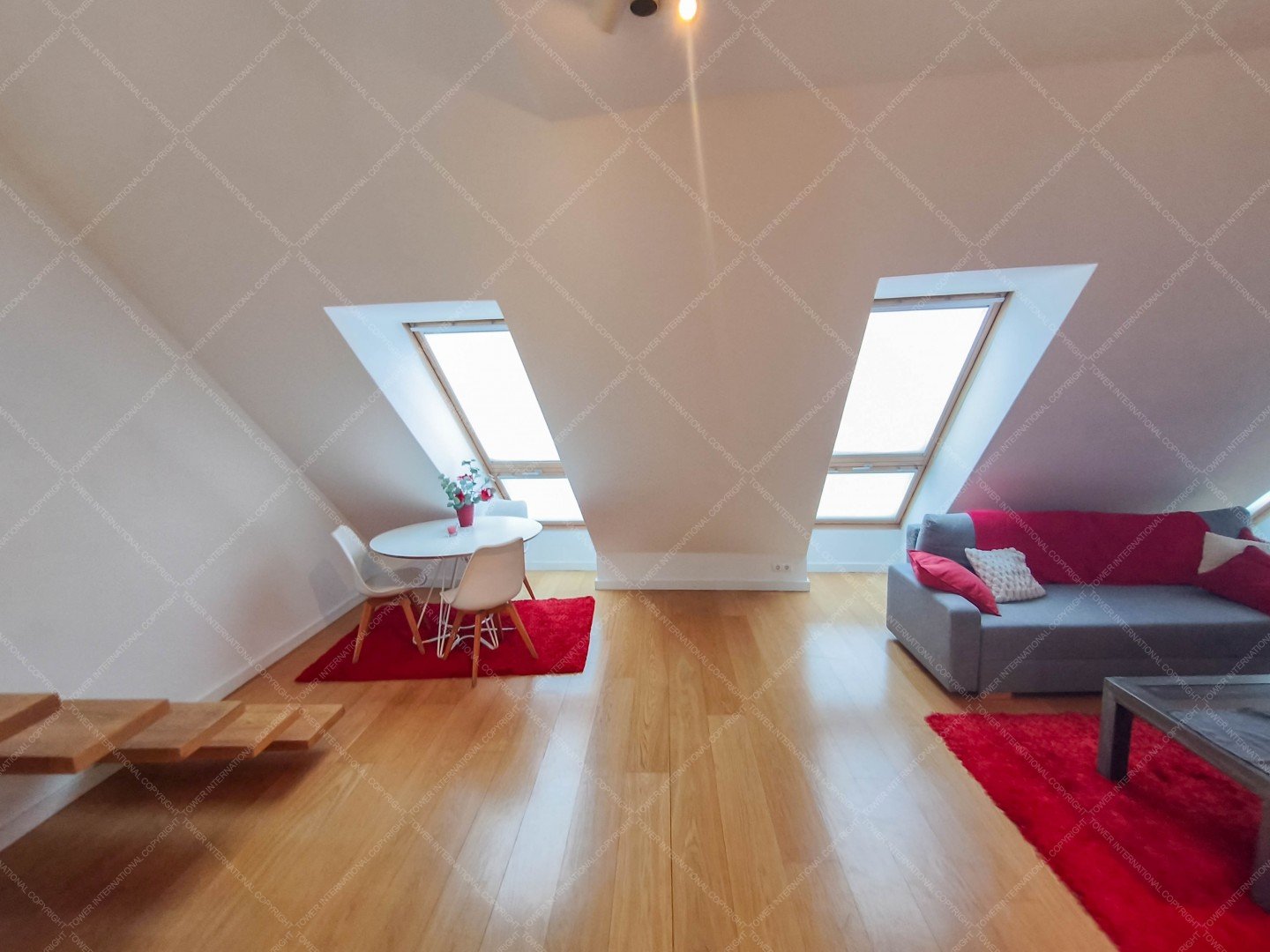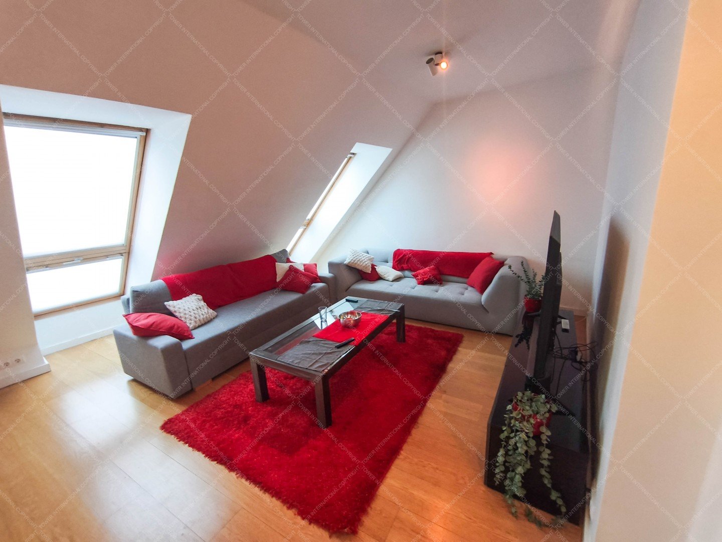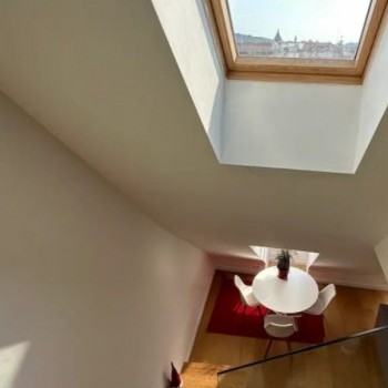 A 90 sqm, 1-bedroom duplex apartment is available for long-term rent in Székely Mihály Street, located in a roof-top extension completed in the 2010s.