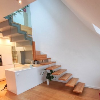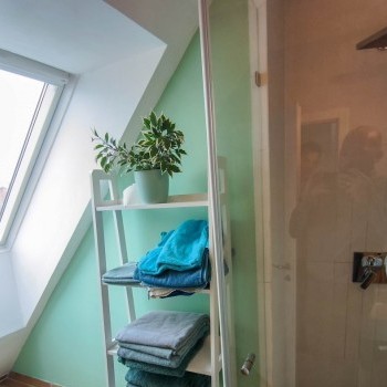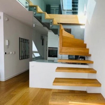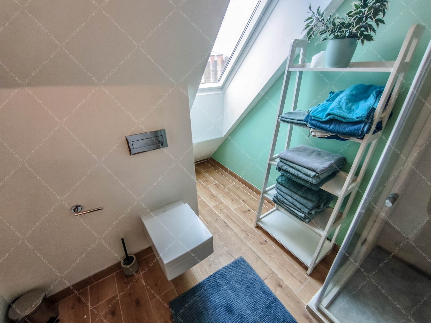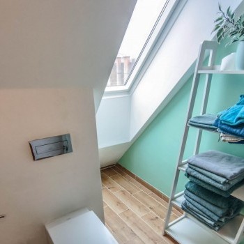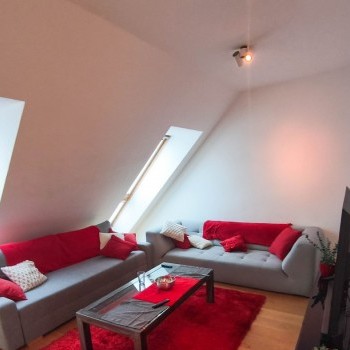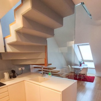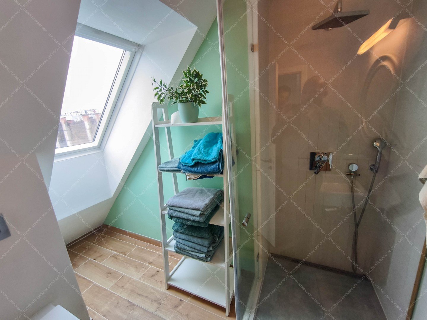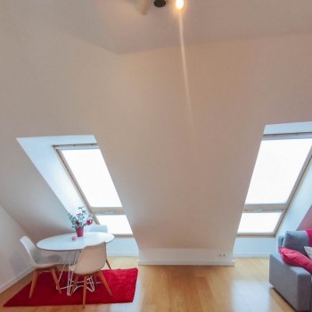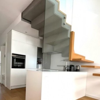 A 90 sqm, 1-bedroom duplex apartment is available for long-term rent in Székely Mihály Street, located in a roof-top extension completed in the 2010s.