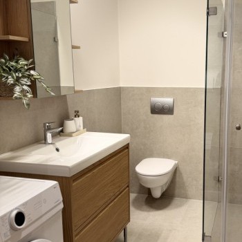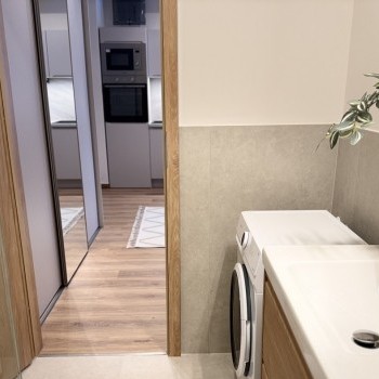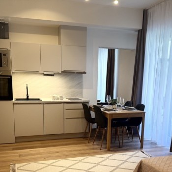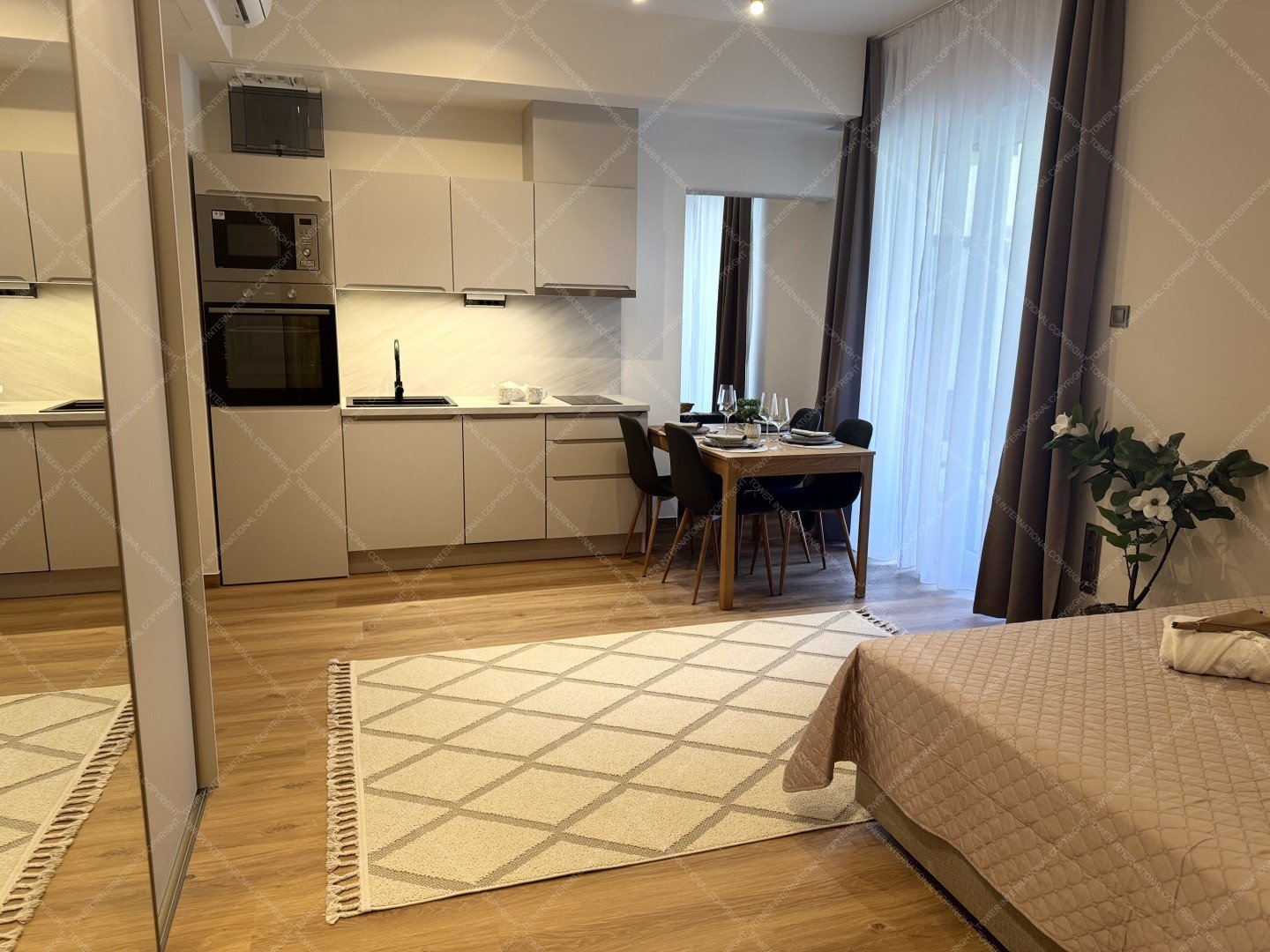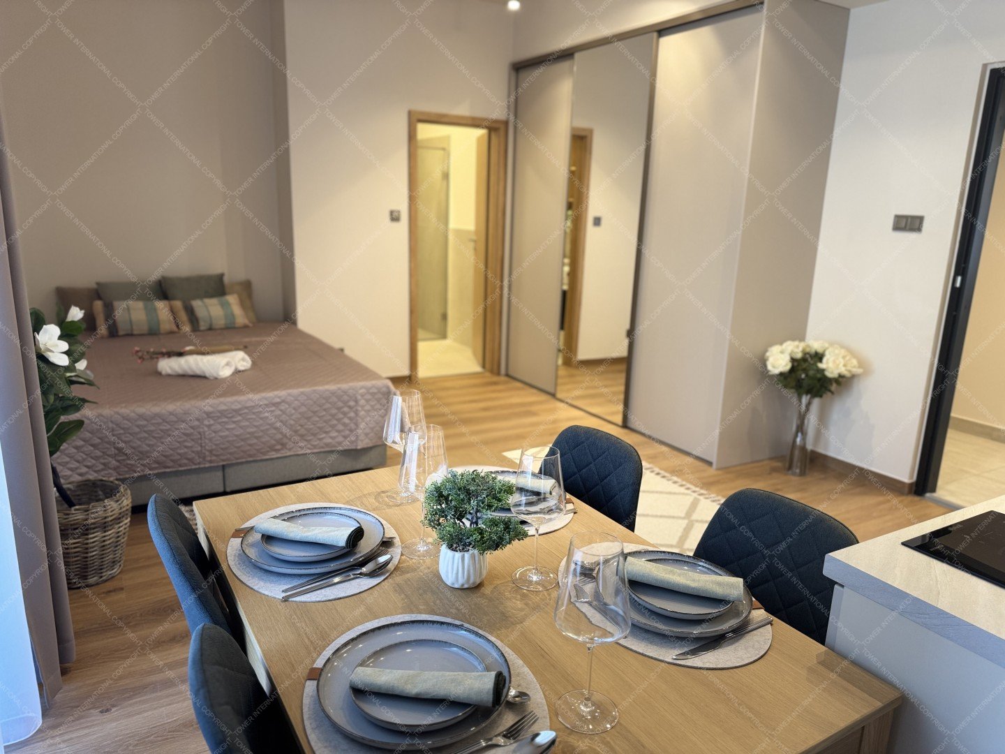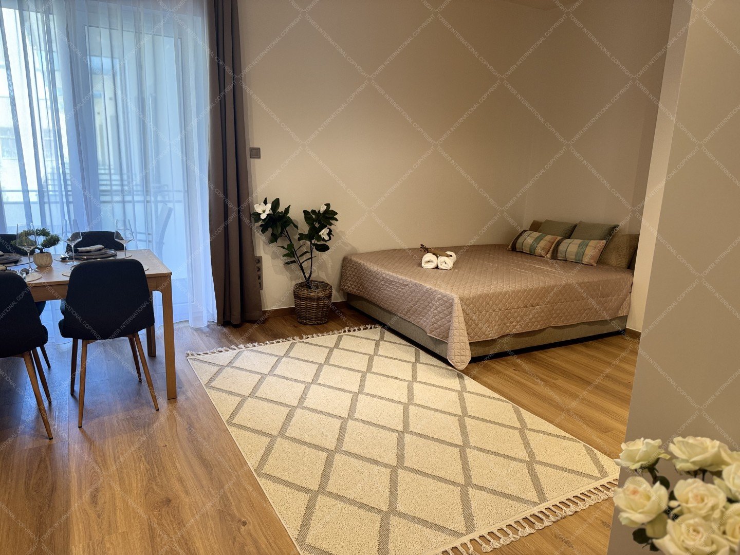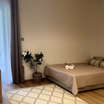 The apartment offers a bright and spacious living room and a cozy bedroom, all furnished in a clean, contemporary style. Everything is brand new and thoughtfully designed – all you need to bring is your suitcase! The apartment includes air conditioning for summer comfort and an elevator in the building for easy access.