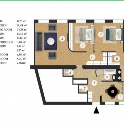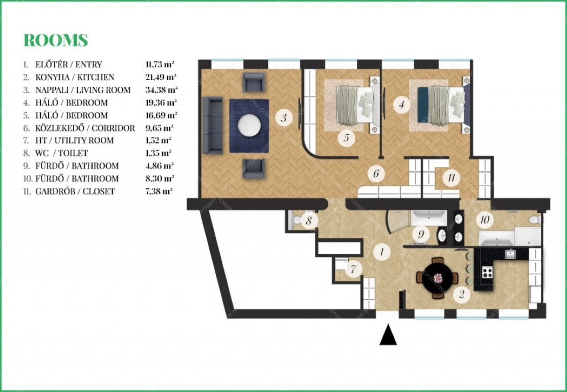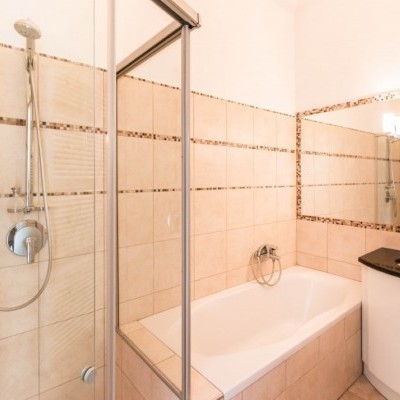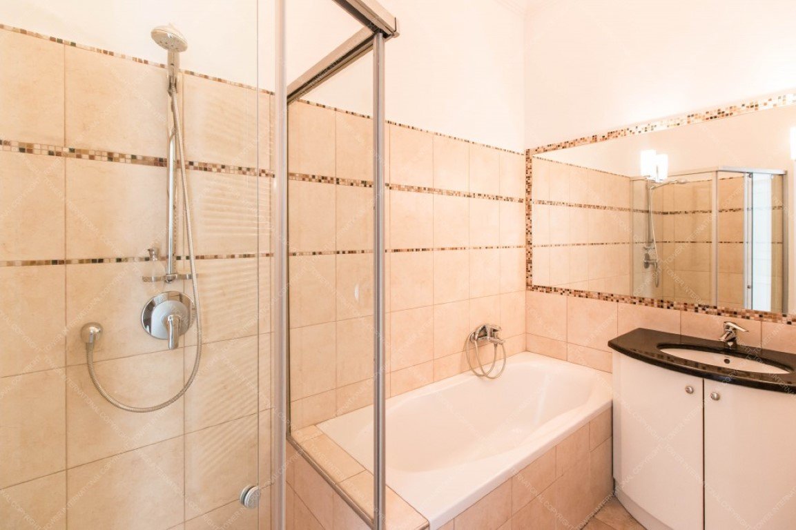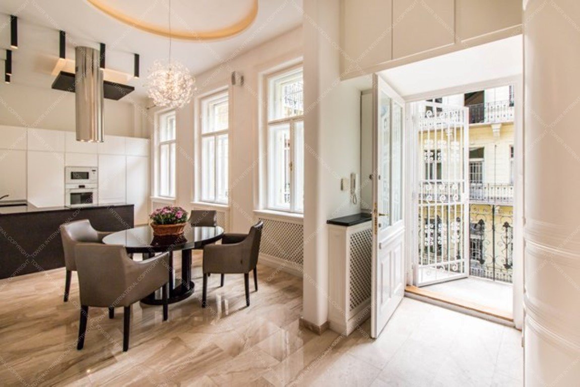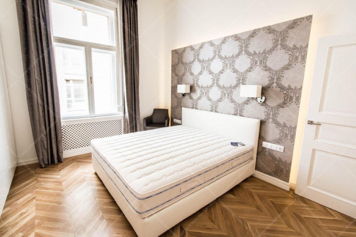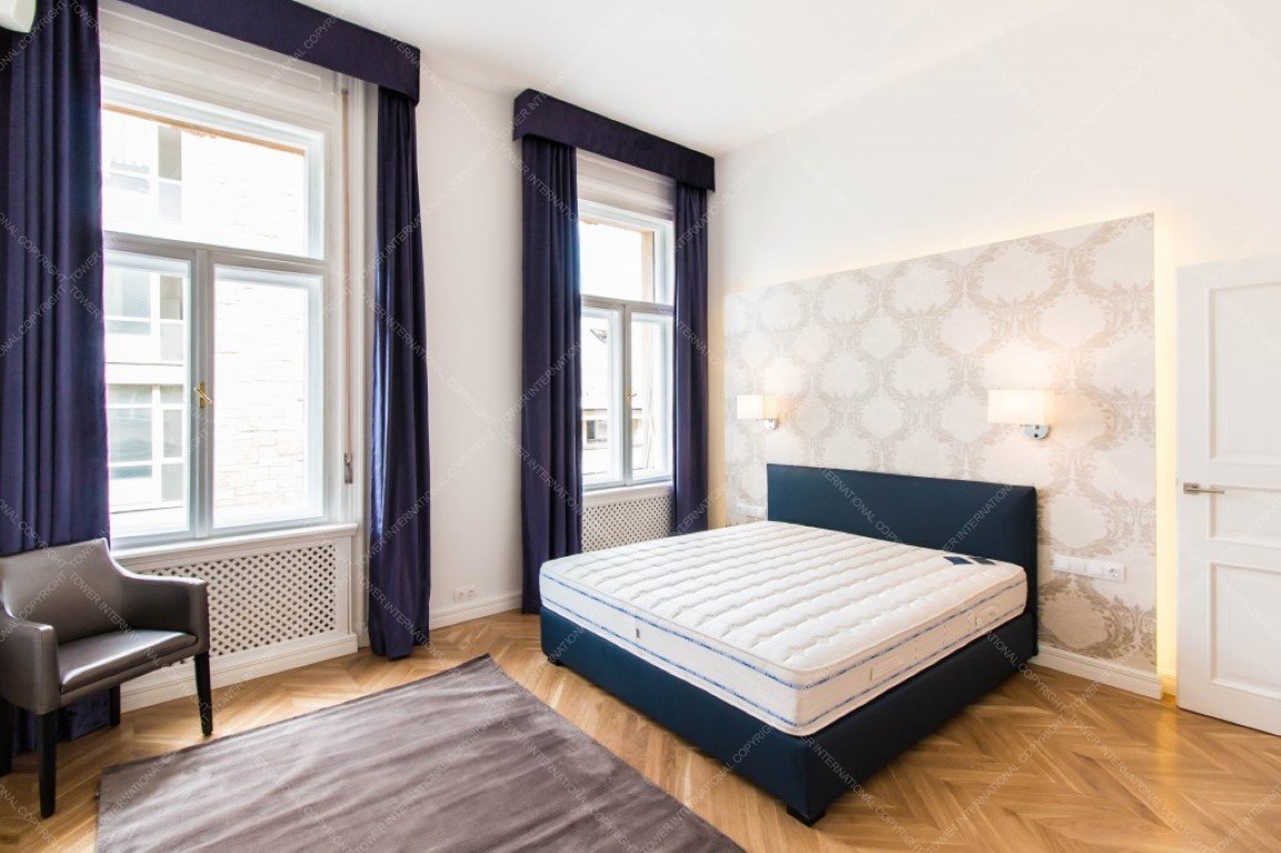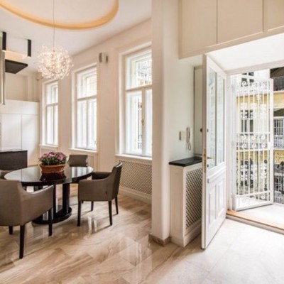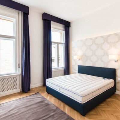 We offer a 142 sqm furnished apartment in district 5. in Falk Miksa utca, close to the Parlament. It is situated in a classical building on the 3rd floor. The windows are facing the courtyard. The apartment is newly renovated. It consists of a living room, open plan kitchen, 2 bedrooms, 2 bathrooms and toilet.