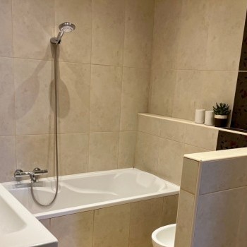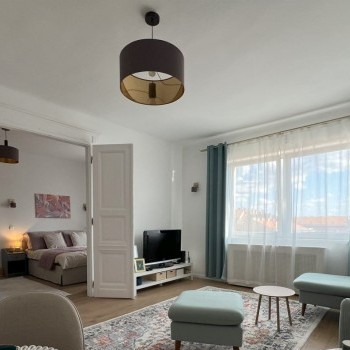 The apartment has a living room, a bedroom, a study or bedroom (can be furnished according to the tenant's request), a bathroom, a separate, equipped kitchen and a 10 sqm terrace.