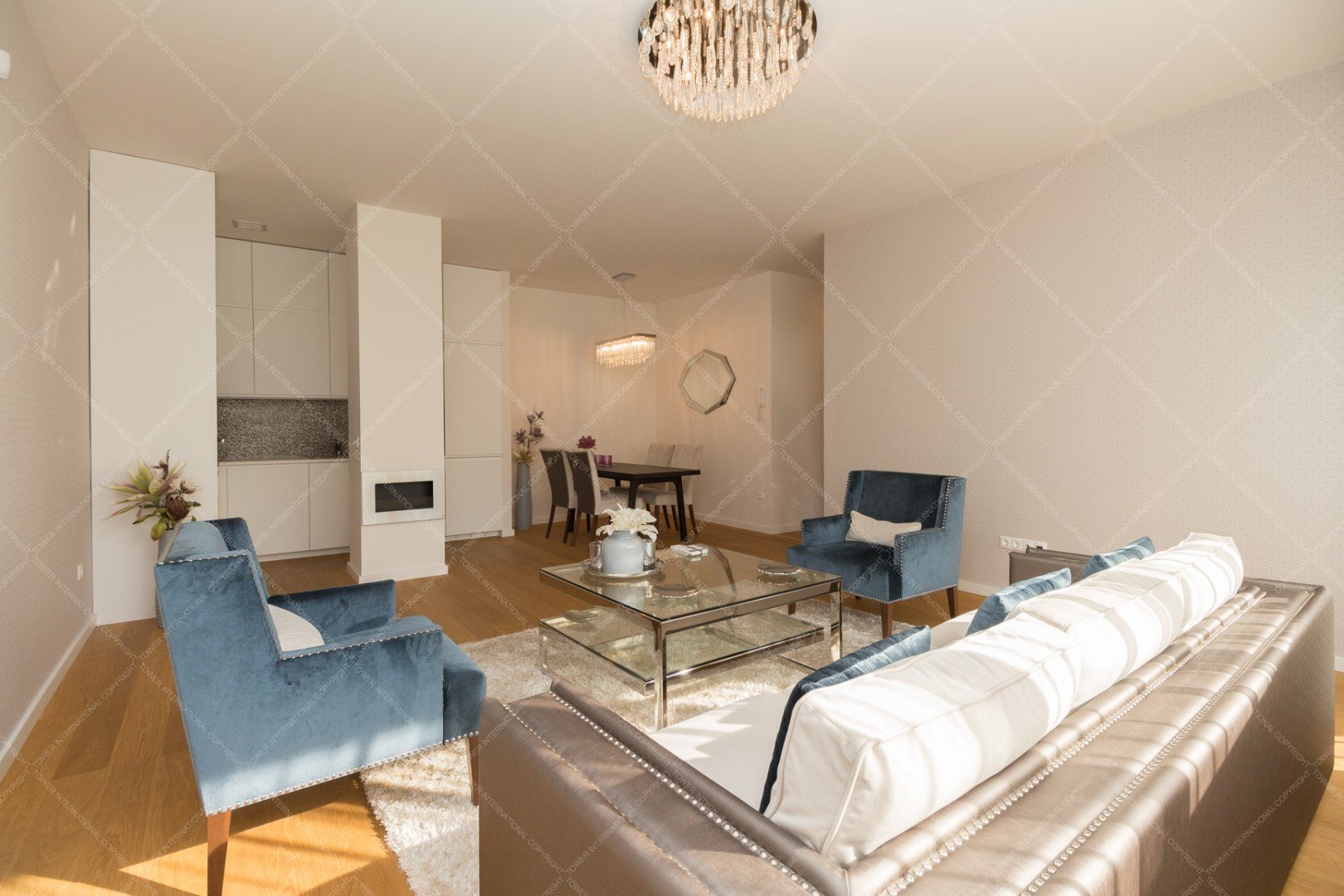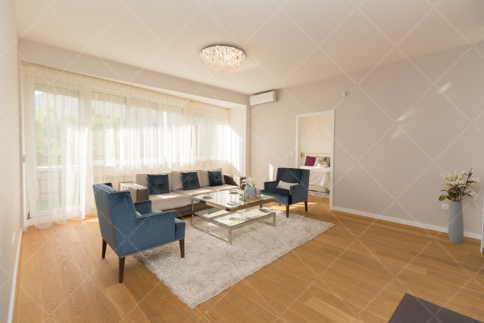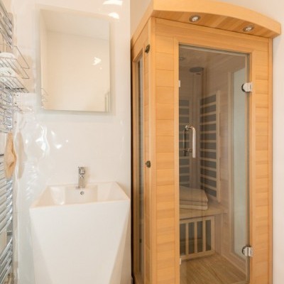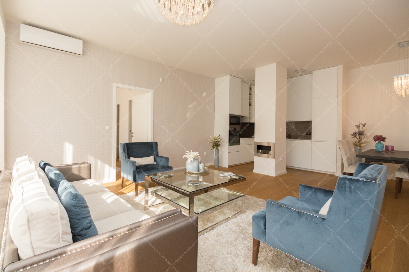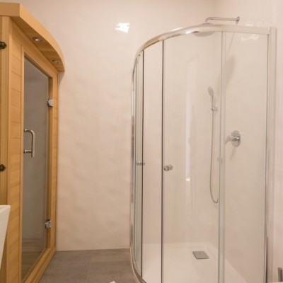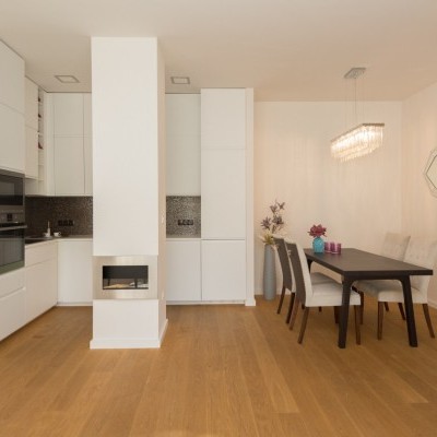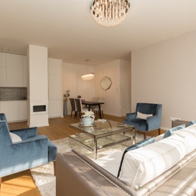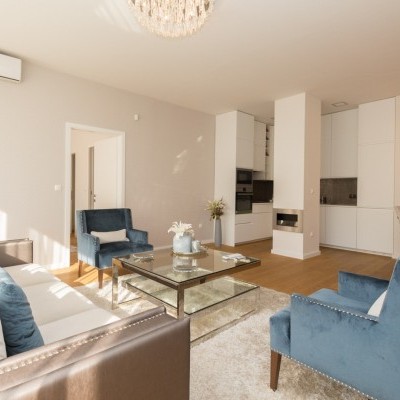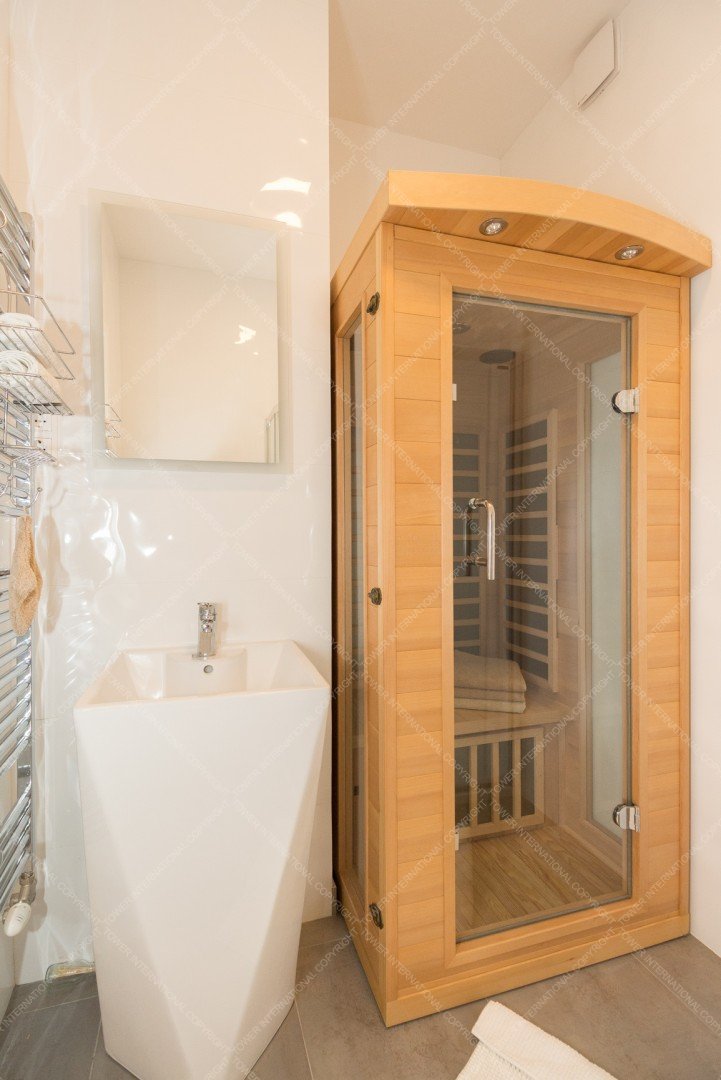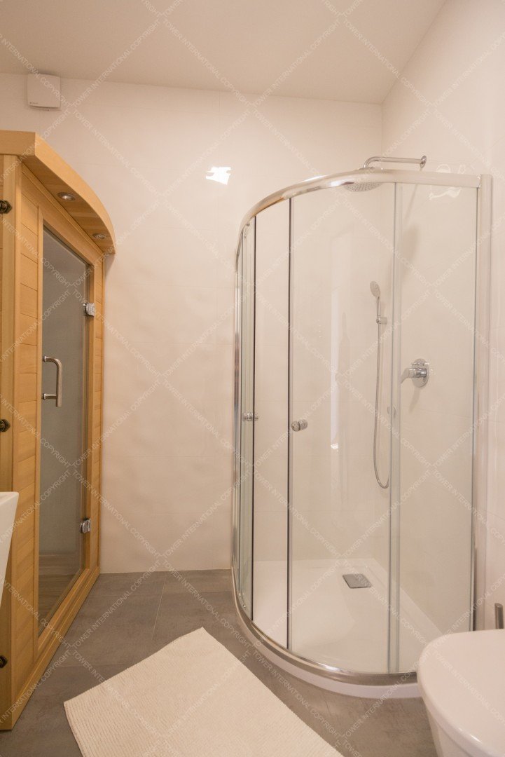 It consists of a living room with american kitchen, balcony, 2 bedrooms, sauna, 2 bathrooms and toilet.