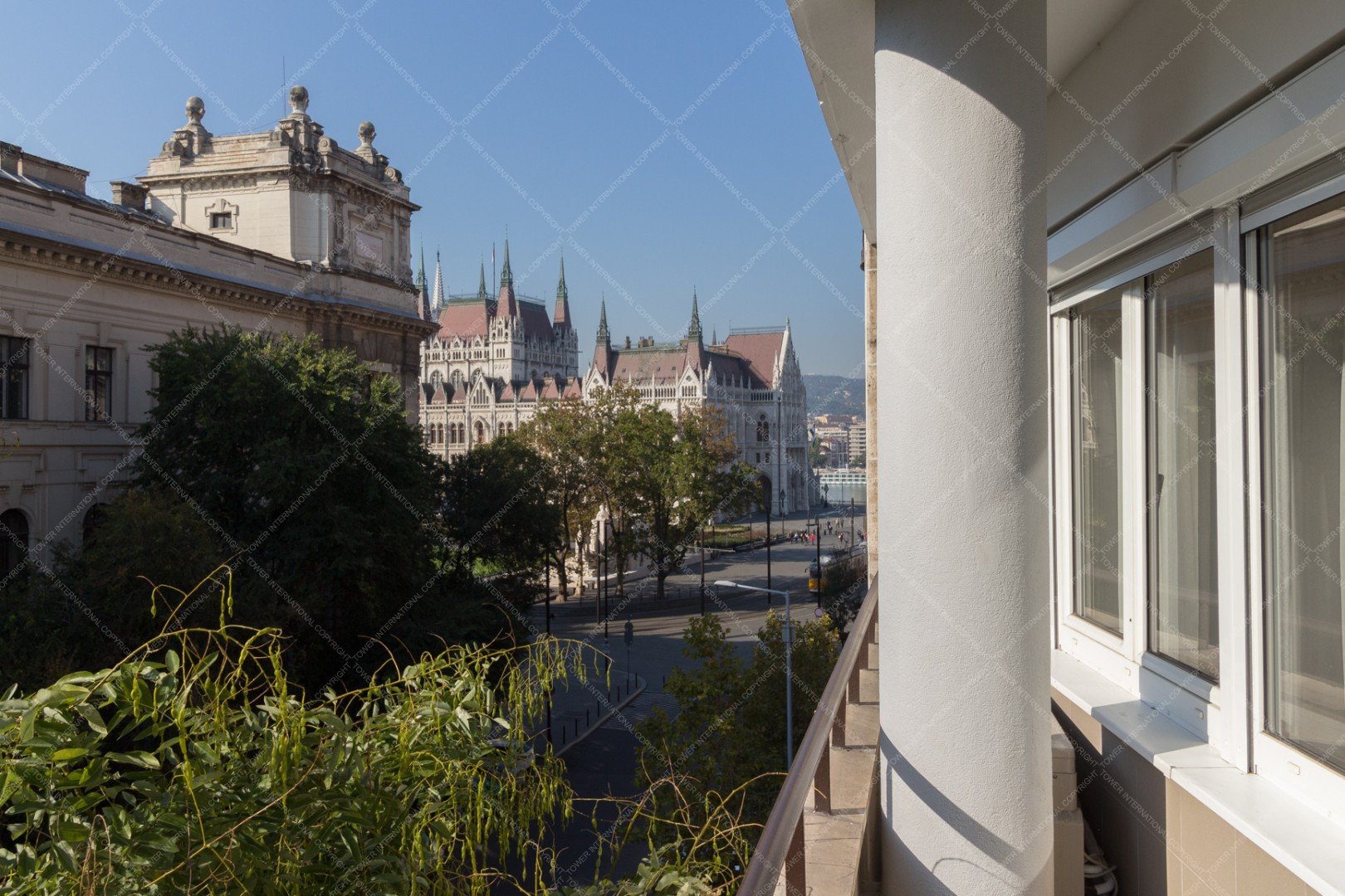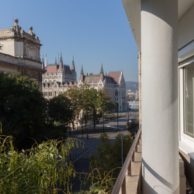 The windows face the Parliament.