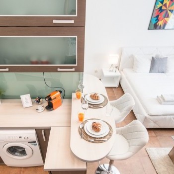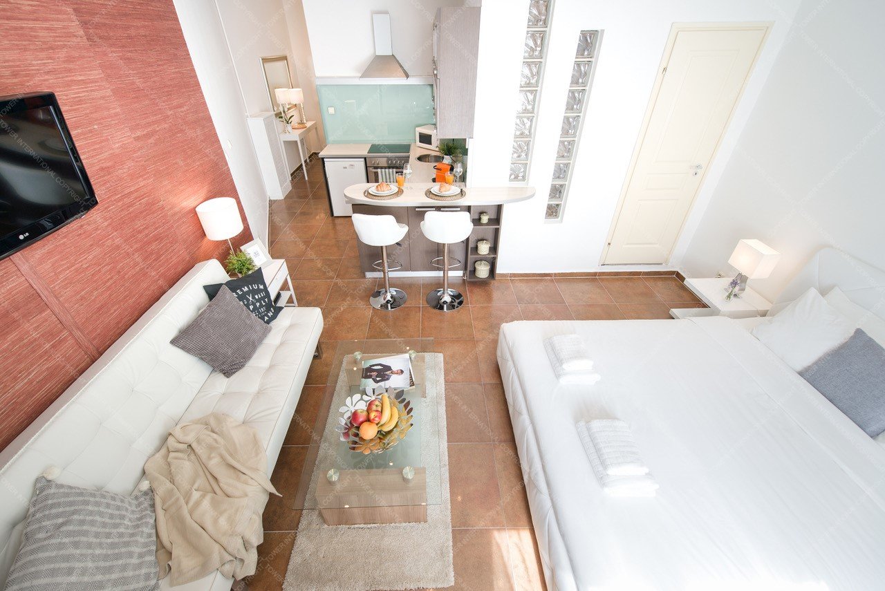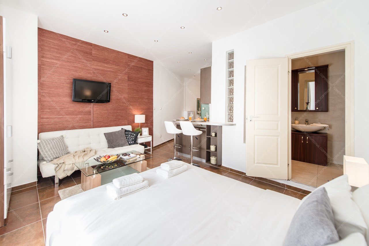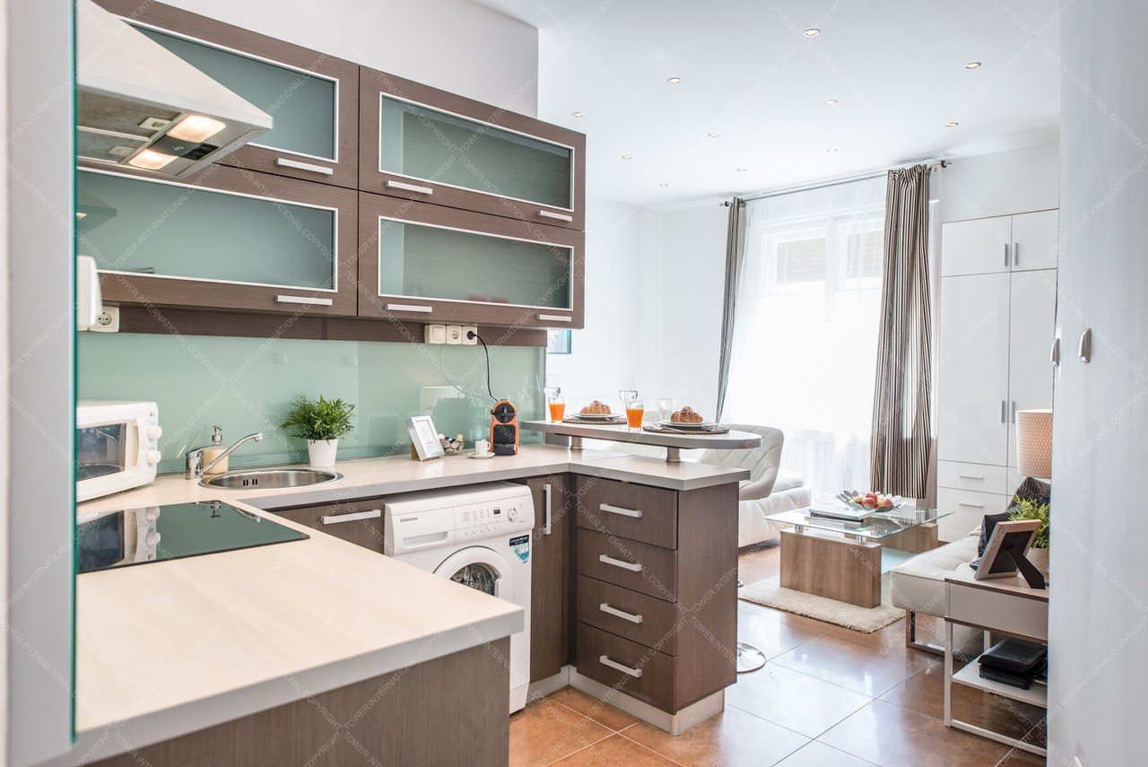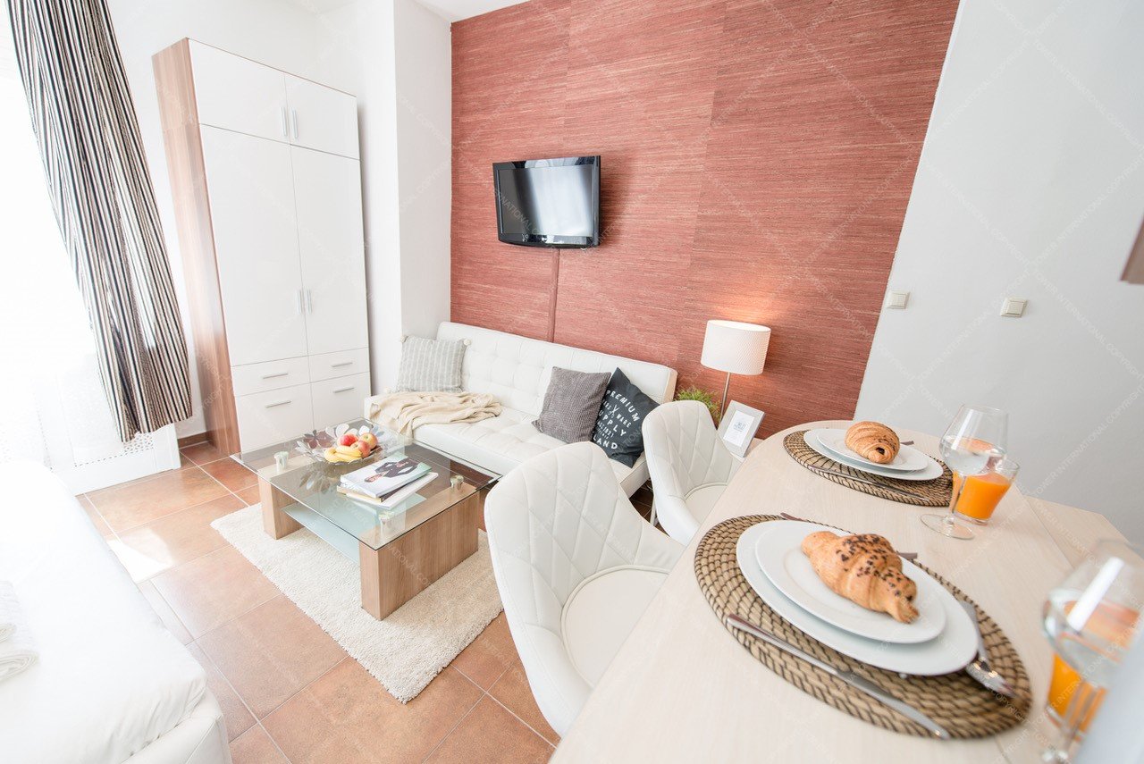 We offer 31 sqm furnished studio apartment in district 5th in Veres Pálné stree. It is situated in a classical building on the 2nd floor. The windows are facing to the street. It consists of a living room-bedroom with american kitchen, toilet and bathroom. The common cost is 18900 huf includes heating and water usage. Pets are allowed!