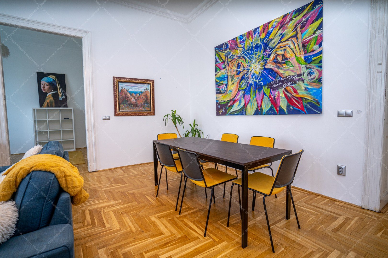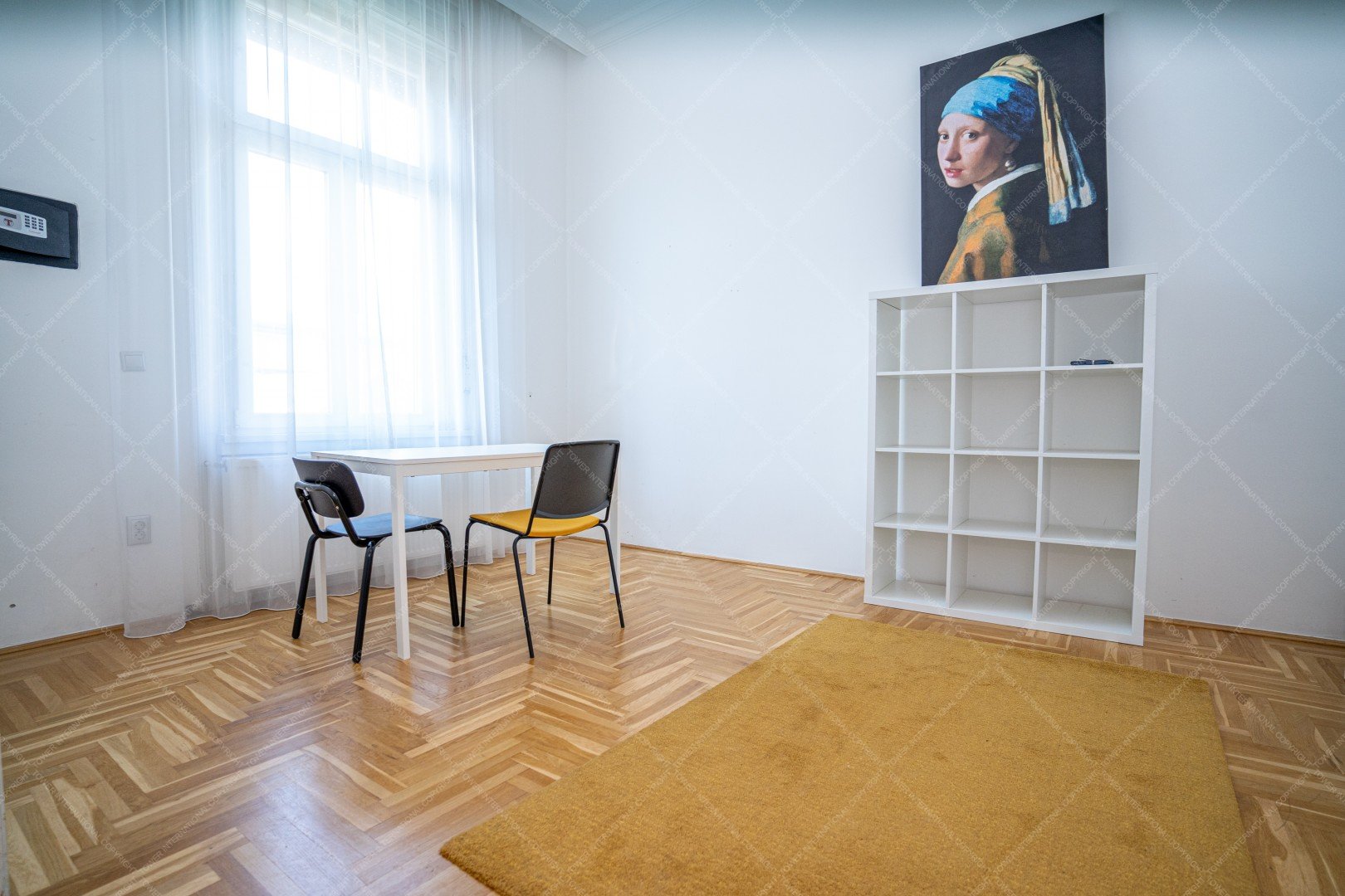 It is facing west, so there is beautiful sunset view from the 4 big windows which faces to the square.