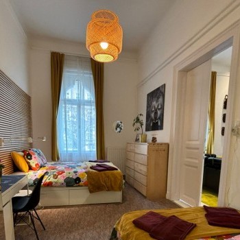 In a quiet yet central location right by Mikszáth Kálmán Square, this freshly renovated, characterful apartment is available for long-term rent. It features three separate bedrooms, a large living room, and a balcony with a direct view of the square. A charming built-in bar adds an extra touch, perfect for hosting guests.