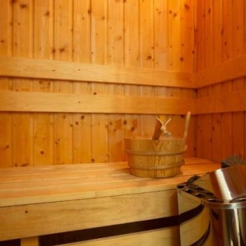 The property has a living room-dining room, kitchen, 2 bedrooms, and 2 bathrooms and a sauna.